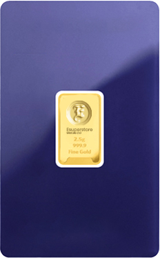Esuperstore Metal Ltd. 250g gold minted bar is produced at our internationally recognised London refinery. This bar is produced to the internationally recognised 999.9 standard and carries Esuperstore Metal Ltd. mark, the weight, fineness and a unique serial number. Bars are supplied in sealed, tamper resistant packaging.